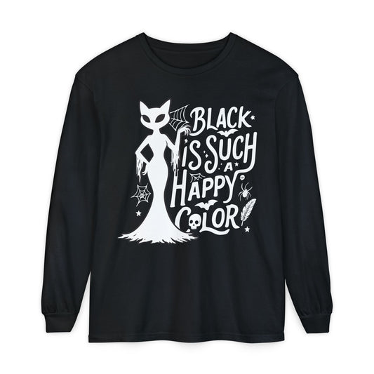 Black is Such a Happy Color Unisex Garment-dyed Long Sleeve T-Shirt
