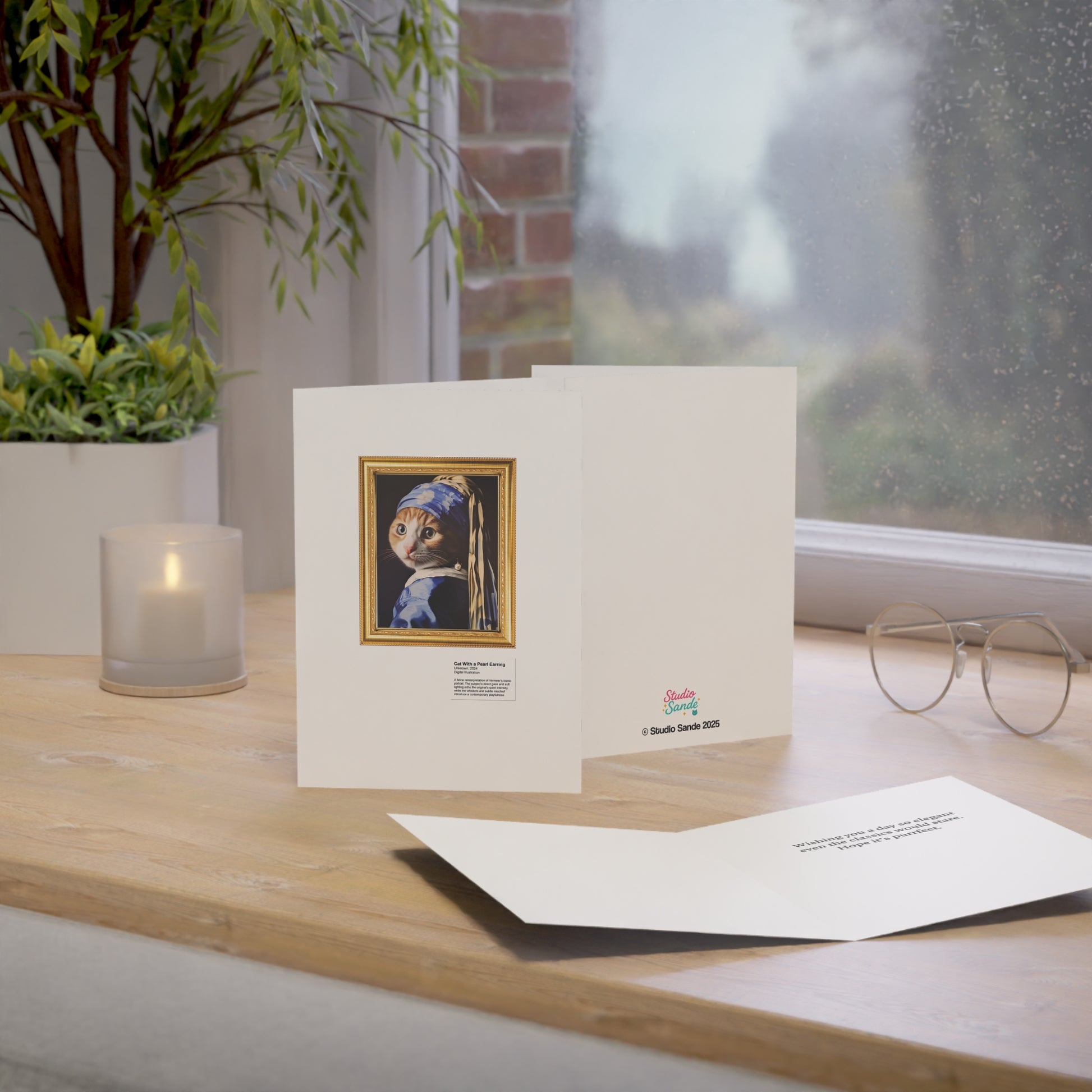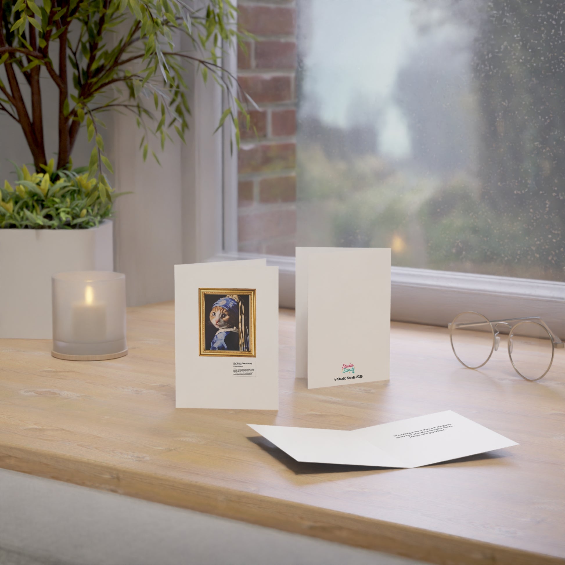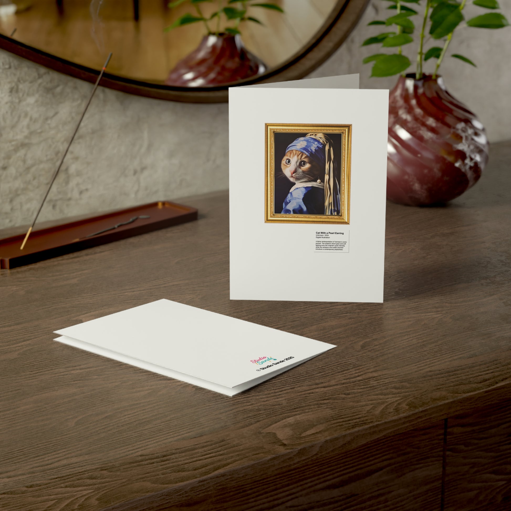 Cat With a Pearl Earring Greeting Cards (1, 10, 30, and 50pcs)