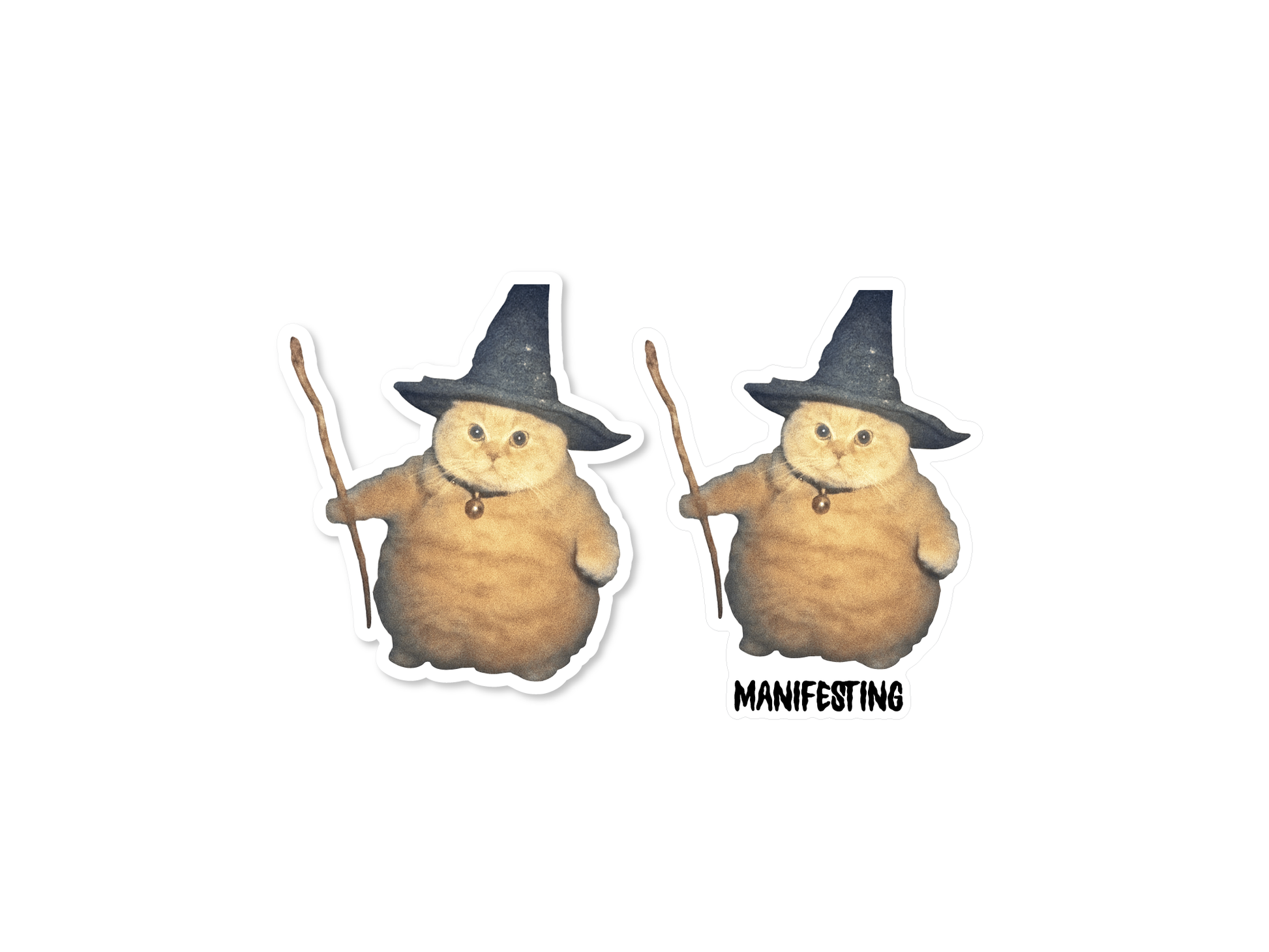 A wizard? A witch? A chonky orange oracle? Yes. This 3" vinyl sticker comes in two magical versions—classic witch cat or “Manifesting” witch cat—because your laptop deserves a little enchanted energy (and fluff).