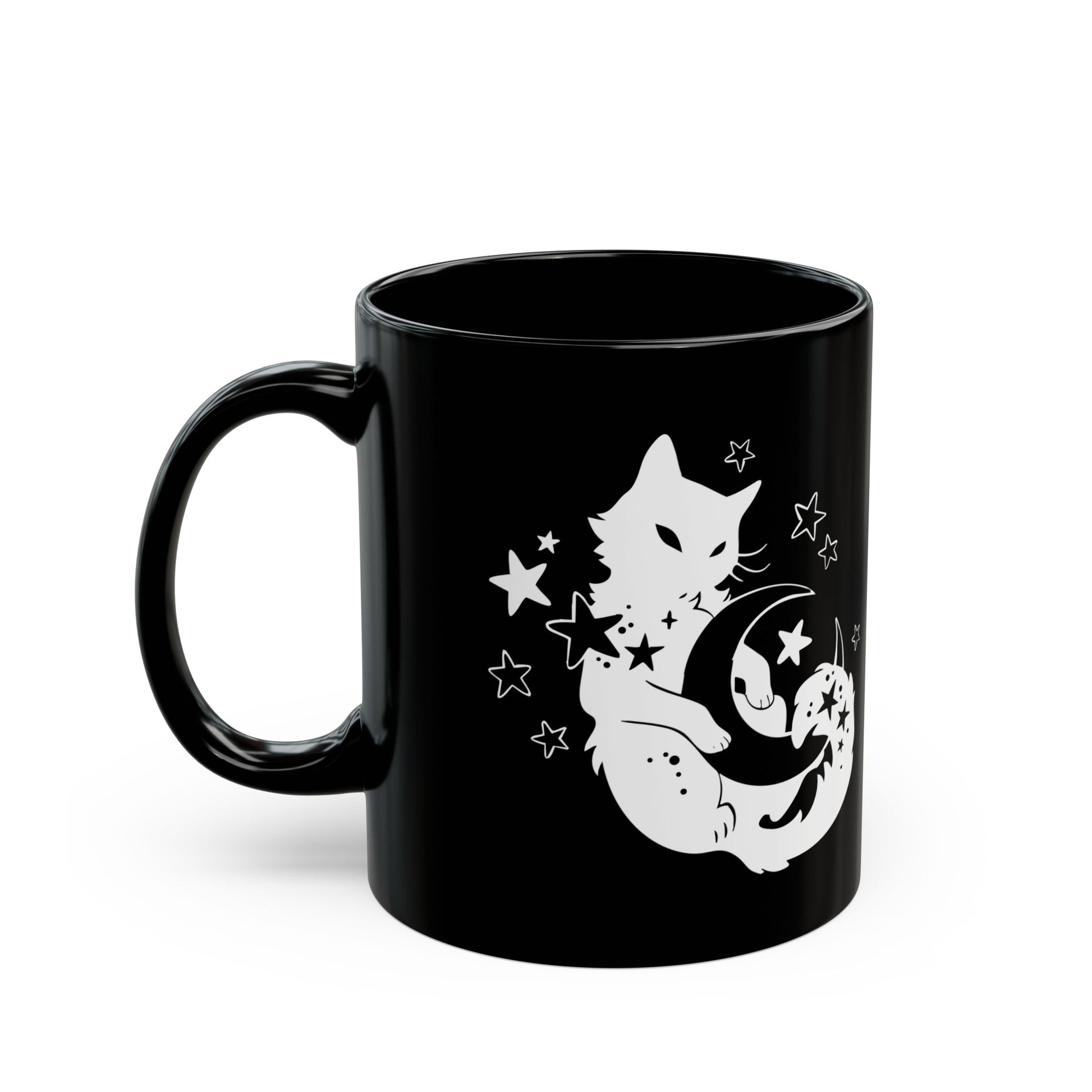 Moon Kitty Amongst the Stars Black Mug (11oz, 15oz)
