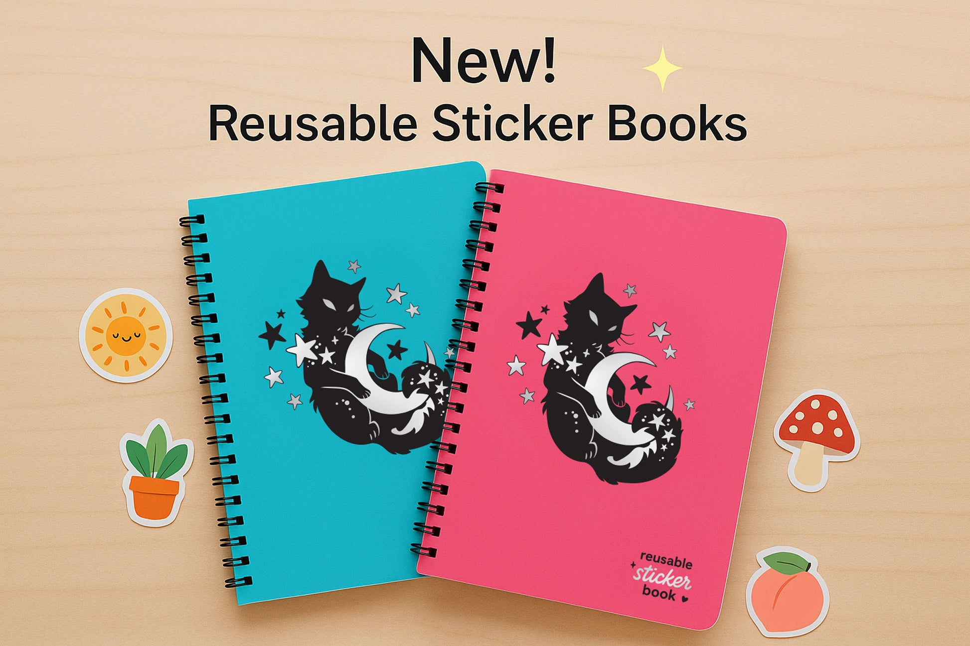 Tired of committing to sticker placement? These reusable sticker books are here to save your indecisive little heart. Featuring a dreamy black cat and moon design, they’re available in vibrant pink or teal and are perfect for keeping your sticker collection neat, organized, and totally re-stickable.